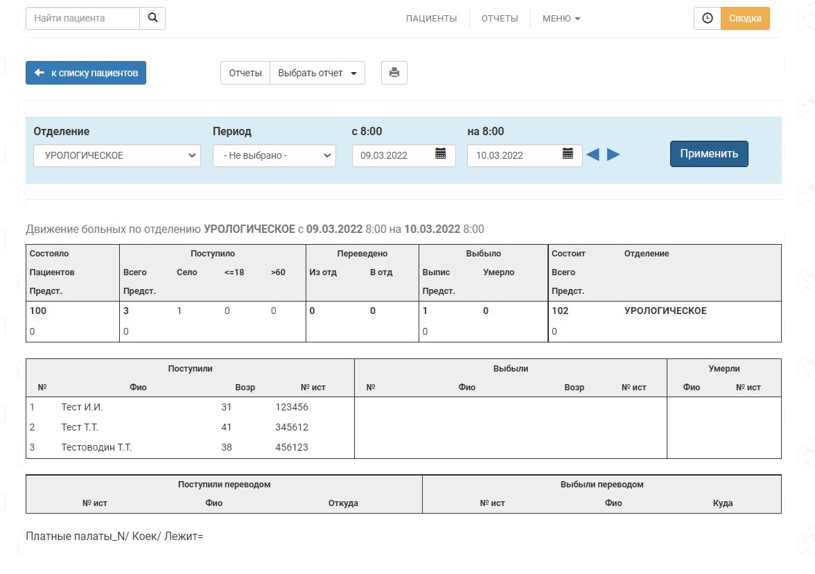 Создание специализированных отчётов по выполненным исследованиям, по лабораторным исследованиям, по пациентам и т.д.