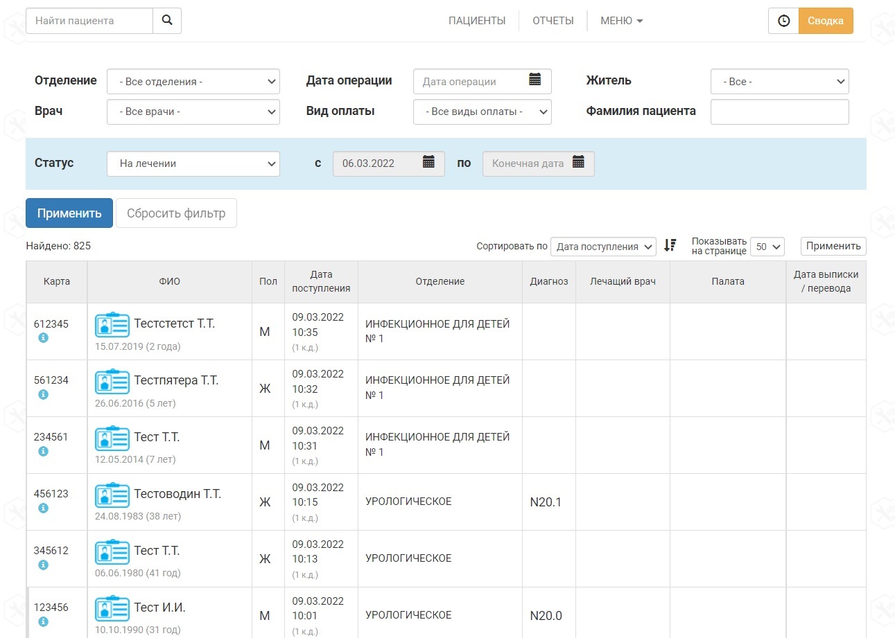Система плановой госпитализации — для получения данных о госпитализированных пациентах и передачи данных о выписанных пациентах.