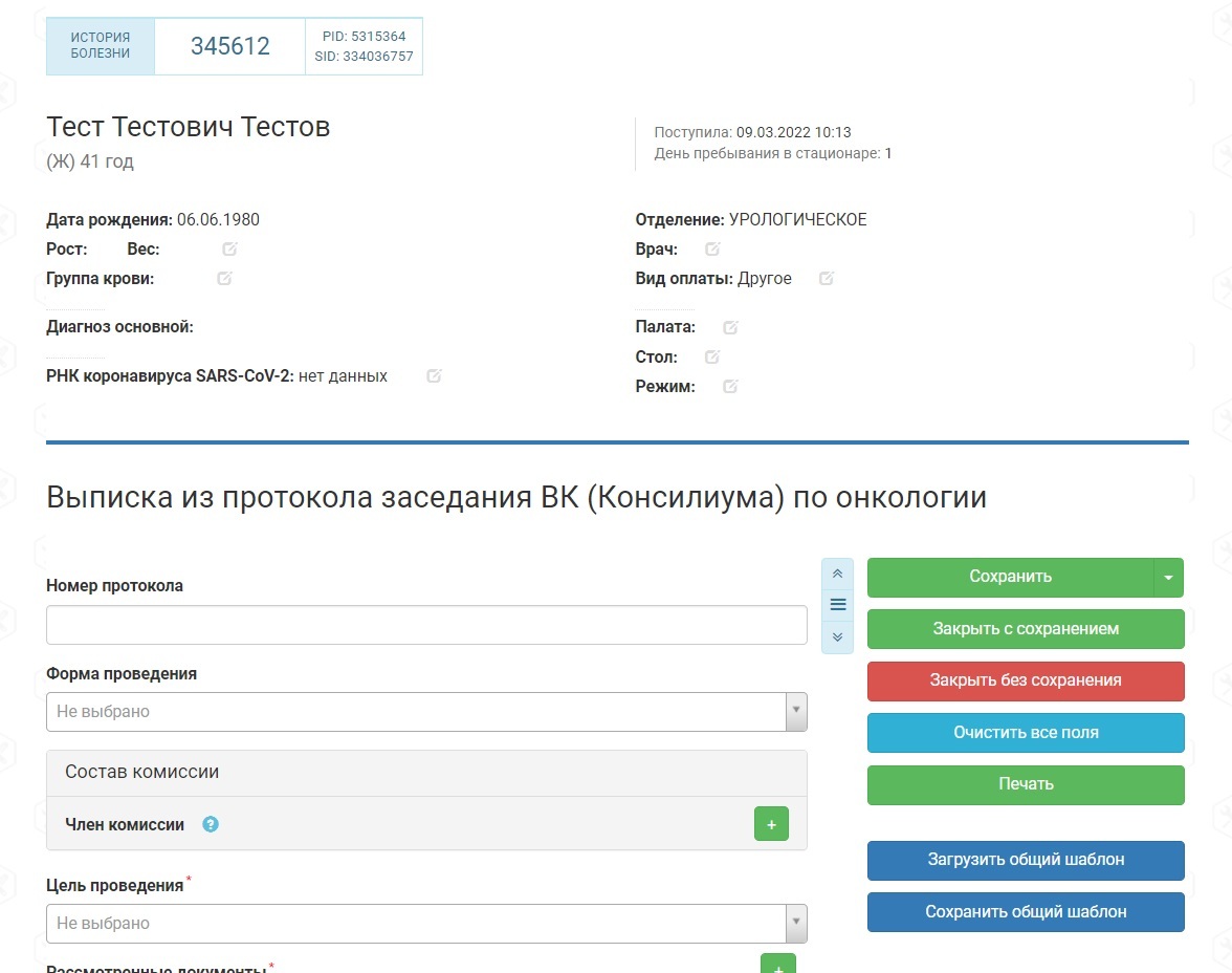 Ведение полноценной истории болезни в лечебном отделении. Создание направлений на лабораторные и диагностические исследования. Назначения лекарственных средств.